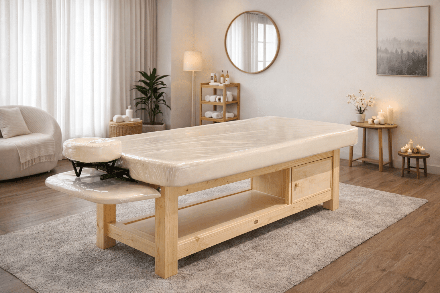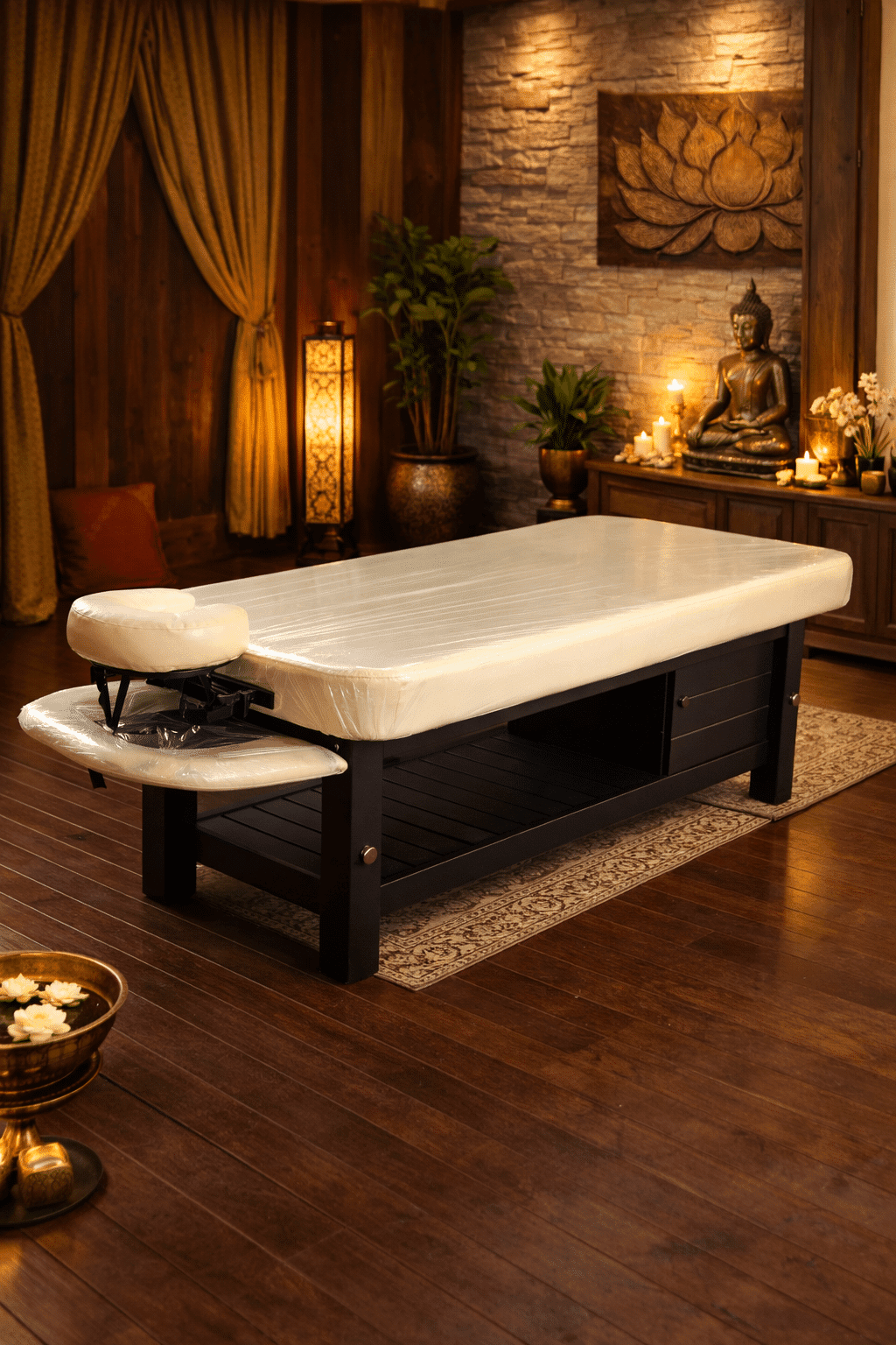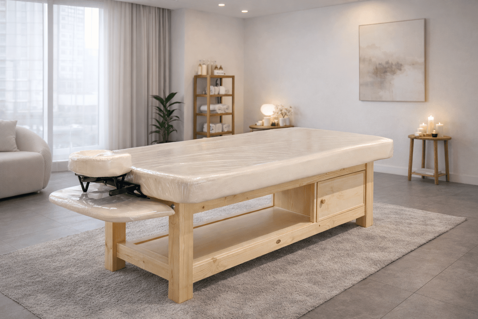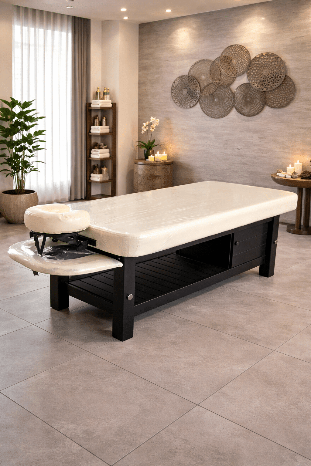Pinewood Massage Bed with a Face Cradle and Hand Rest with 1 Cabinet (TMT12)
